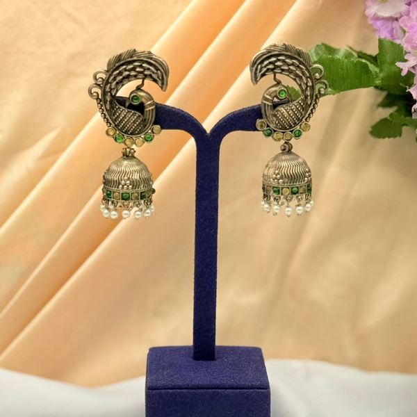Oxidized Peacock Earrings with Jumka